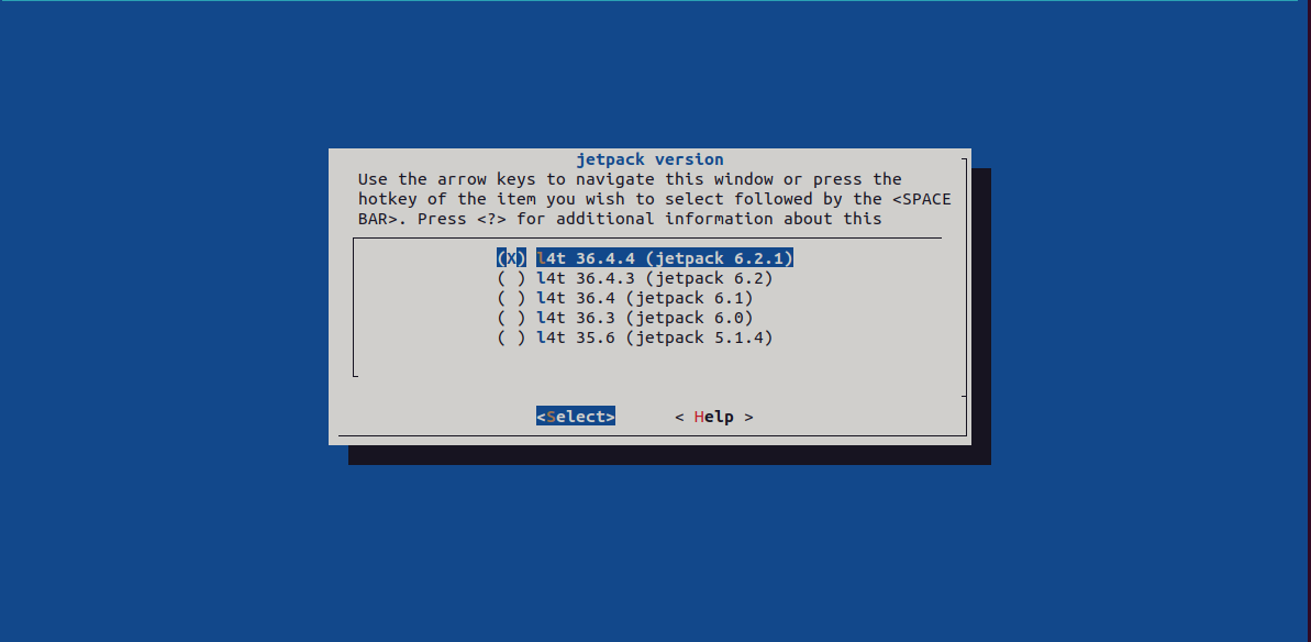 Jetpack-Tools makes use of Menuconfig to allow for straight forward configuration and easy customization.